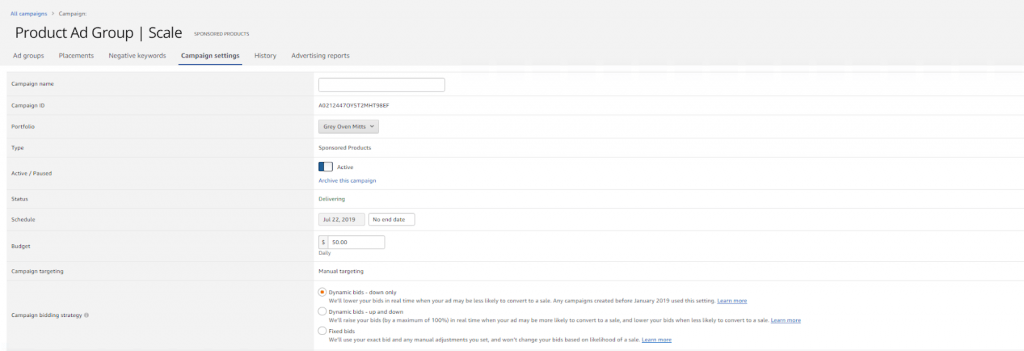 - Your Dynamic Bidding Settings