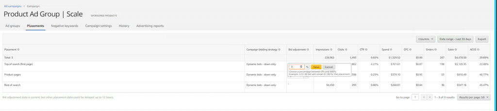 Now that we’ve talked about the keyword bid and daily budget, we can discuss the relatively new feature that is placements, which is set at the campaign level.