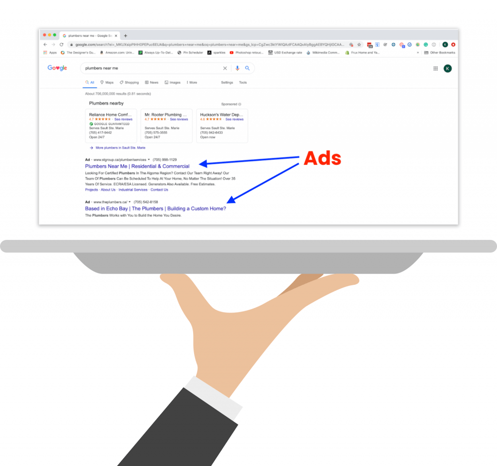 If you search for ‘plumbers near me’ you may be served with a local plumber’s advertisement, contact information, and a website link.