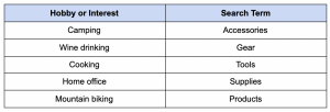 Think about things you like to do and know a lot about — and make a list. For example, maybe you like to camp on the weekends. Then, head over to Amazon and run a search for each interest on your list and a search term like “accessories.” Here are some examples: