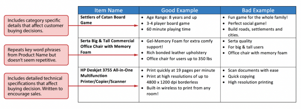 Now, by that we mean, Walmart really likes listings that DON’T use keyword stuffing. They like listings that are geared towards the buyer (and not an algorithm). And they like listings that are simple, and easy to read. In fact, here’s a side-by-side example of what Walmart considers “good” and “bad” key features (or highlights):